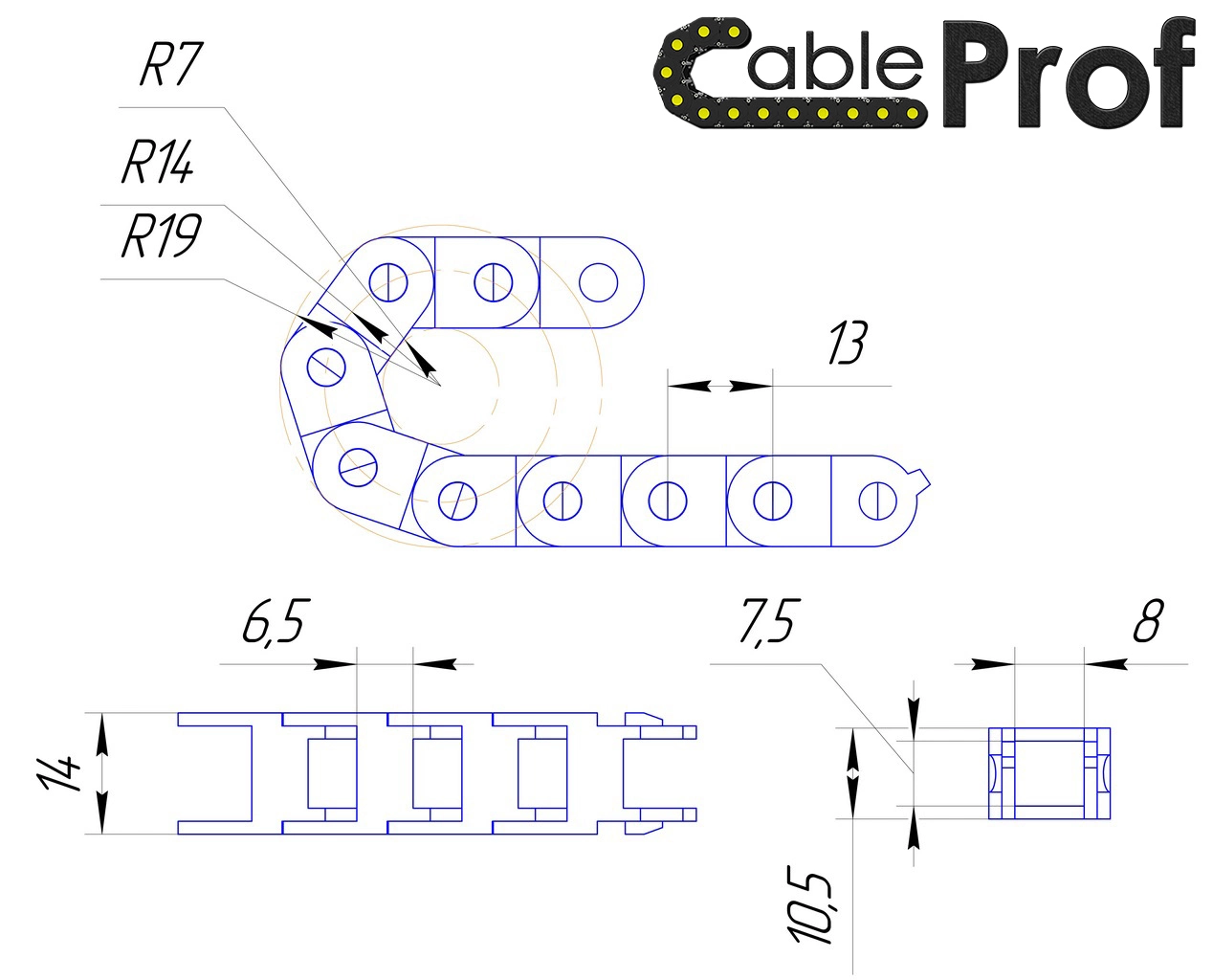 Кабелеукладчик, кабель-канал, кабельная цепь "Cableprof" 8*8 R25